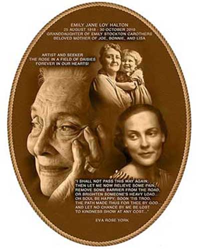Bronze bas relief 3D photo plaque. Custom shape, border with foreign font